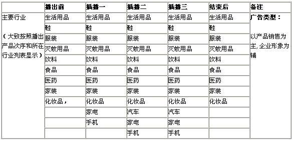 由此可以看出节目自身还没有形成比较明确的主打行业,很多大牌广告主对节目的定位、走势甚至收视效果等还存有疑虑,只有一些小品牌更乐意冒一下险。