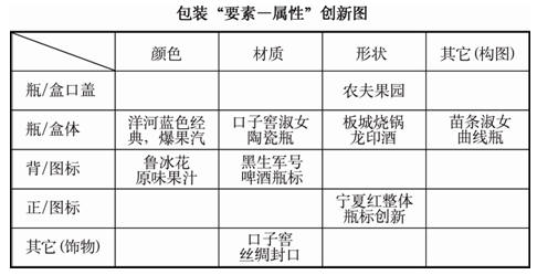 我们通过要素和属性的创新组合,即包装开发在单个要素在单个属性或多个属性的组合创新,或者是多个要素在单个属性或多个属性上的创新,如“瓶体-材质”、“背/图标-颜色”、“盒体-形状”等组合,通过系统“组合”创新来开辟新产品的包装开发路径。