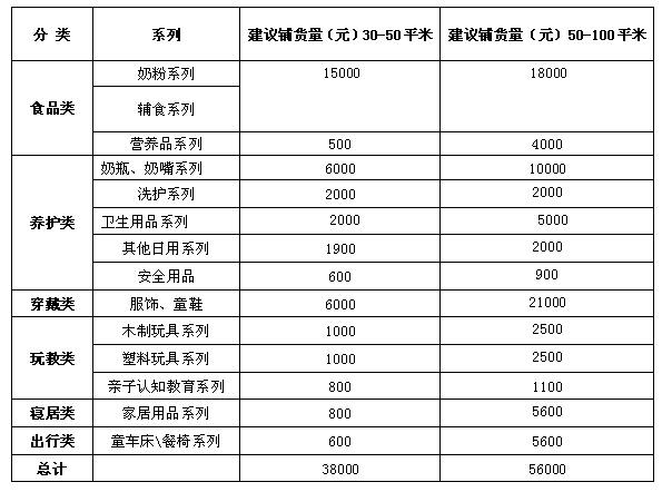 备注:标准店需要有自己的特色,注重服务和专业的育婴知识,通过有特色的产品和一定的客情、广告投入,吸引稳定客户。适合有一定资金,同时对婴幼儿事业感兴趣的创业者选择。