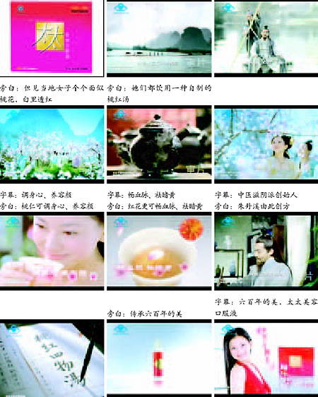 通过唯美的表现手法,演绎朱丹溪创方“桃红四物汤”的故事和太太美容口服液配方的源远流长,传承六百年经典名方,将太太口服液“传承六百年的美”和产品配方值得信赖的诉求,直观地传递给广大受众。