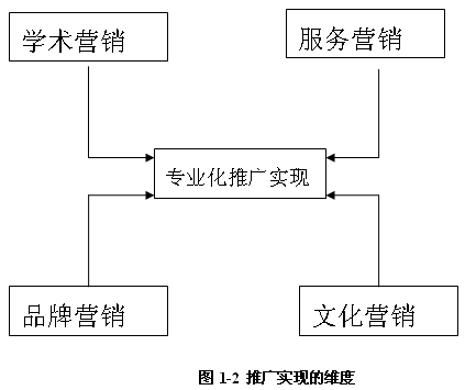 如图1-2,现在市场炒得火热的学术营销、服务营销、品牌营销、文化营销等优秀概念,即使冠以再时髦的营销名词,还是要依靠专业化的推广活动来实现。