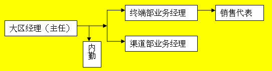 张大彪在办事处组建后,开始只设一个终端部,招聘6名销售代表,由一名业务经理负责管理、带领。任务就是划分片区,走访终端(零售终端和餐饮终端)铺货;根据所铺产品的不同,由不同的经销商分别送货并结款。
