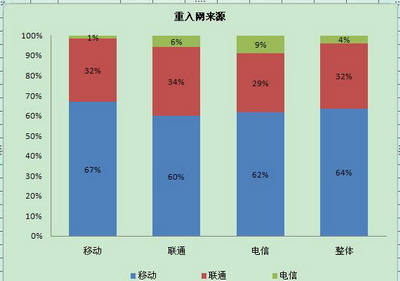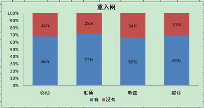 据市场监测,其中市场中新增客户中有69%的客户是属于重入网客户,其中又有62%的重入网客户中是来自于原有移动老客户。
