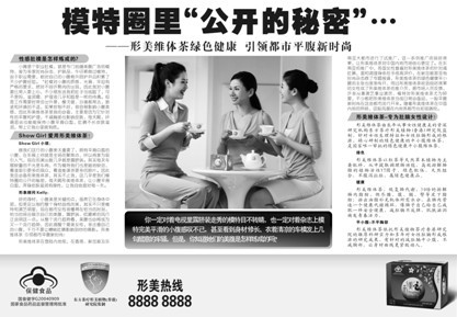 当前位置:中国广告人网站--->品牌营销栏目--->营销案例-->详细内容 形美维体茶突破上市营销纪实 作者:周涛 日期:2010-11-24 字体:[大] [中] [小]