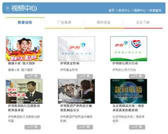 2)提升制作质量,优化图象设置。视频制作是前提,也是传播的基础;高清晰的图象设计,高度优化的图象设置,无疑是传播的重要方面;专业化的图象制作是极为重要的。如伊利品牌对其公司的“宣传视频”就集合使用,专门设置“视频中心”集中展现品牌形象,宣传并建立“企业形象”。