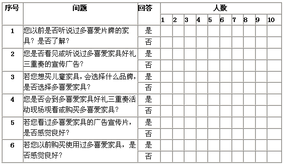 通过本次活动,直接可提高多喜爱公司家具月销售量,在固定消费群体扩大的基础上,可招揽、吸收竞争对手的消费群,间接提高了多喜爱品牌的知名度,促进企业形象的升华及塑造品牌内涵的外延,为以后企业打造家具行业第一品牌埋下了成功的伏笔。