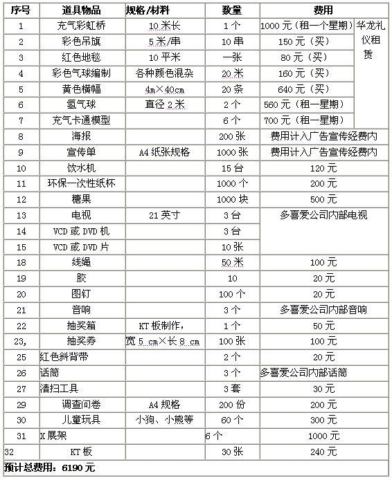 10、应备有糖果,供小孩子享用(每个小孩发5块奶糖)(预计储备50块),引起儿童及其家长的好感。