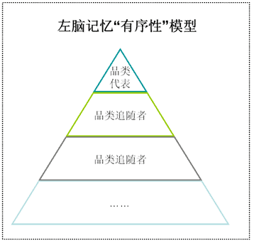 即左半脑对品牌的记忆是有排序的。在某个“品类蜂窝”里,品牌的排序并非是没有轮次的,而是有序的,第一个先进入的(且有影响力)将排在最前,成为消费者决策购买的首要考虑,第二个将成为次选,第三第四个将较有序地排在更次要的位置。里斯.特劳特并不赞成在某个“品类蜂窝”里有超过4个品牌(成熟行业的寡头垄断与此不谋而合)。这就促使那些没有排得靠前的品牌必须寻找新的尚未被抢占的“品类蜂窝”,而这些新的“品类蜂窝”我们通常称之为“蓝海”。