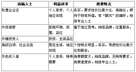 这些卖点与高端人士上班、生活、休闲息息相关,掌握的好,就能很好抓住高端客户的眼球和钱袋。
