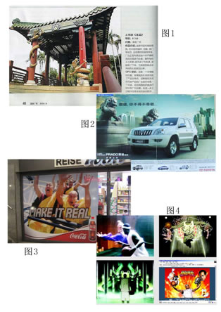 再来看一则NIKE在中国的广告—恐惧斗室篇。广告男主角是NBA巨星勒布朗-詹姆斯。广告中身穿耐克衣服的詹姆斯打败了形似中国老人的武林高手、中国飞天的女子、吐烟雾阻的中国盘龙。(见图4)