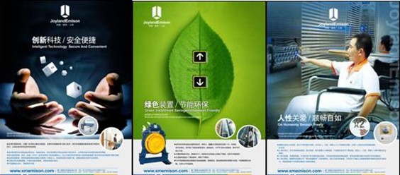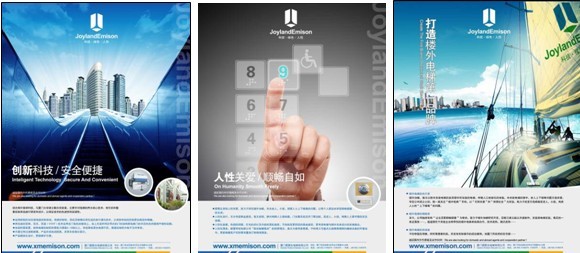 在品牌形象的塑造上,我们重新为爱默生品牌设计了logo,并将企业整体形象以及科技、绿色、人性三个方面做支撑性设计。也同样为楼外加梯产品设计了主视觉形象。而在相关设计之前,项目组策划人员从诉求对象、诉求重点、诉求方式的诉求策略,主题策略,文案与画面的创意策略,材质与媒介的表现策略等几个方面都进行了策略把握。这样,文案与设计才能在策略之下有方向性的去进行创意表现。而这些工作都是在增加品牌成功表现的筹码。相关视觉表现如下: