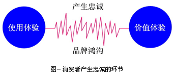 这个问题,我们早在第二章里就回答过了,即:恰恰在“品牌鸿沟”里产生。也就是,消费者的忠诚最有可能产生在从“使用体验”向“价值体验”过度的环节(如下图)。