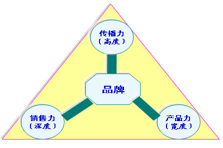 品牌三力构造成了一个品牌的平面,但三力是互为一体、互相起作用的,任何一力的缺失都会给企业带来难以估量的损失。三者关系模型如下: