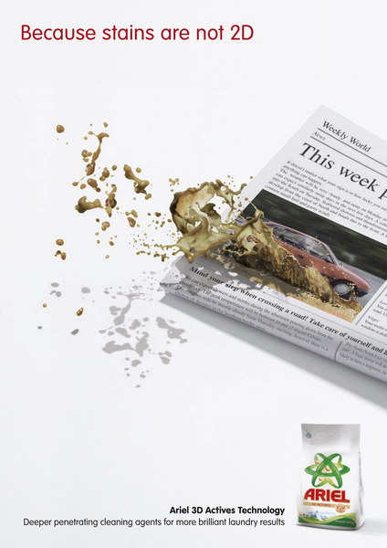 当前位置:中国广告人网站>创意策划>平面饕餮>详细内容 Ariel洗衣粉平面广告(1) 作者:佚名 时间:2011-10-10 字体:[大] [中] [小]
