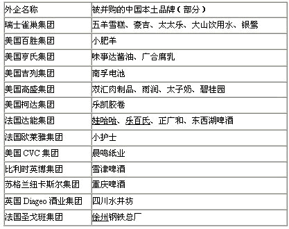 (下表为外企所并购的部分中国品牌)