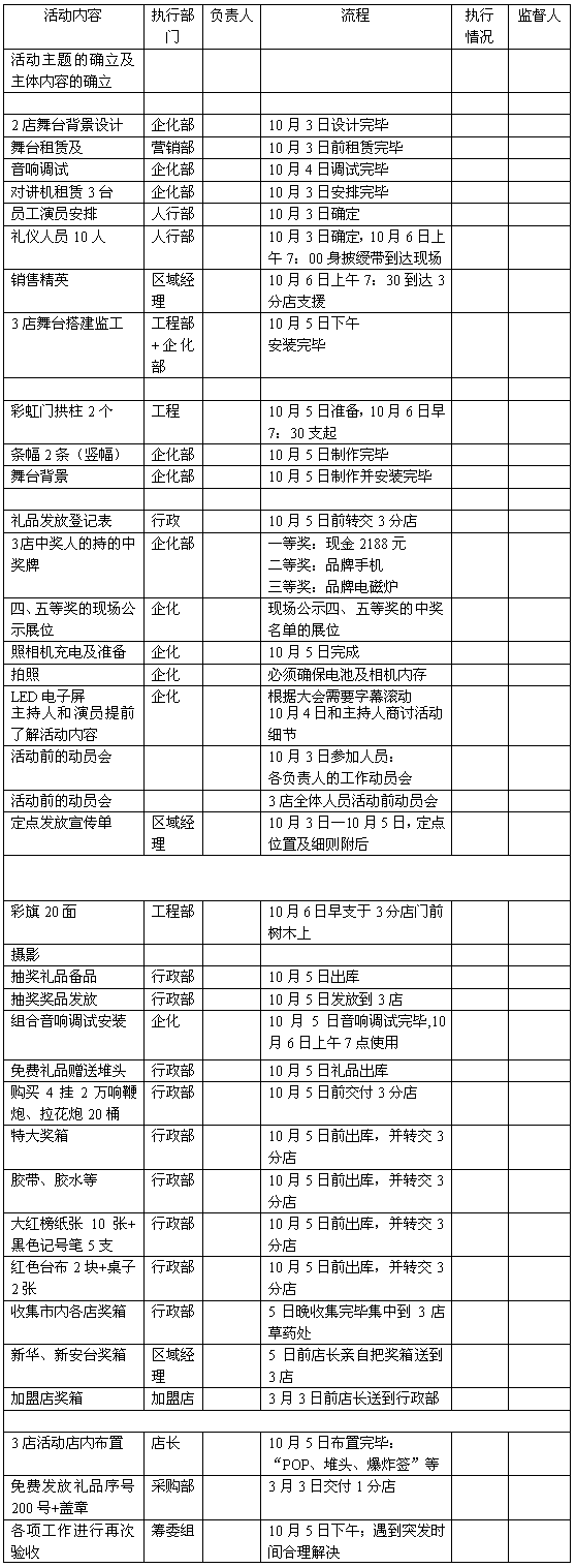 一、1分店抽奖活动筹备工作推进表