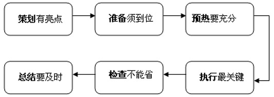 准备再充分的活动都会有疏忽和不足的地方。因此,执行过程中,检查环节一定不能省。发现问题,尽量当场解决问题;如果实在解决不了,要争取在下一次活动时尽量避免。大型活动的执行更容不得丝毫的马虎,否则不但会走样变形,而且可能产生恶劣的社会影响和负面效果。