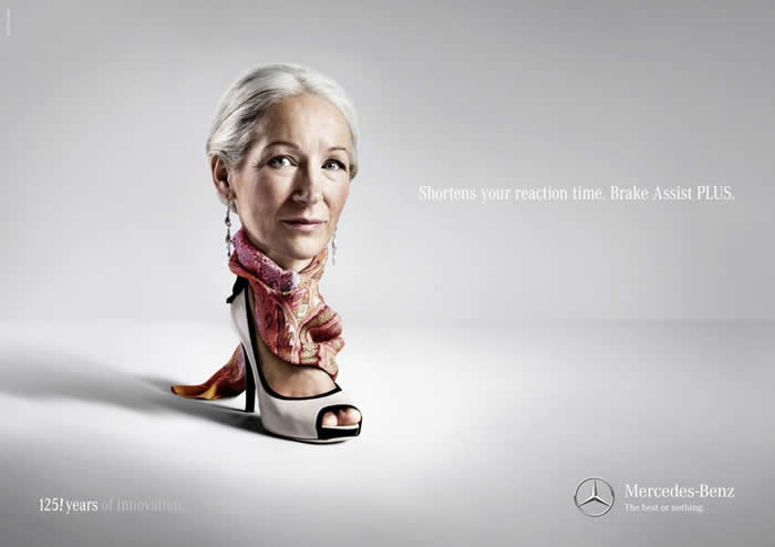 梅赛德斯奔驰刹车辅助系统平面广告:缩短反应时间(1)