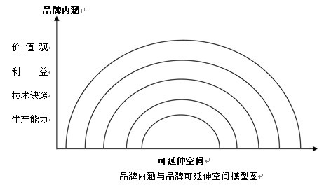科普菲特曾提出过一个品牌内涵与品牌可延伸空间模型,通过该模型可看出:品牌内涵越抽象,则品牌延伸力越大;品牌内涵越具体,则品牌延伸力越弱。