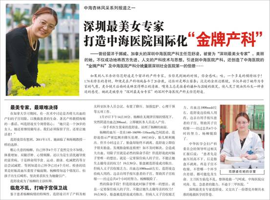 我把专访的标题由《为生命“剪彩”,守护母婴安康》,改为《“深圳最美女专家”打造国际化金牌产科》,全篇围绕着专家的形象美、心灵美、技术高、人性化做文章。我认为,如果“深圳最美女专家”这个说法传播起来,还会有些效果。老板看了也很兴奋,指示扩大宣传范围,包括网络。