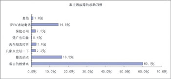 1.紧急情况下,车主拨打SVW求救电话,在调查中位居第三位(见图1)。
