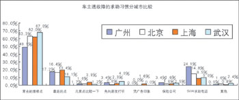 2.紧急情况下,车主对SVW求助电话使用率广州最高,上海最低(见图2) 。