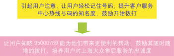 客户服务中心对外沟通号码是95000789,由于位数较长,难记,再加上宣传上力度不够,用户拨打量极低,因此很容易在第一时间内使用户减少和上海大众的直接沟通。