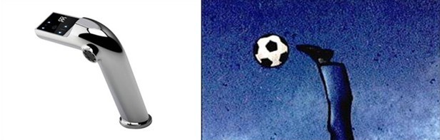 影视画面:梅西蜻蜓点水般过人,画面多次特写强调点触细节;踢完比赛→回到高级酒店,倒挂金钩(刚好叠化成产品形态)→皮球碰触到感应面板,水溢出(此细节再次点出产品功能特点)→享受欧联卫浴