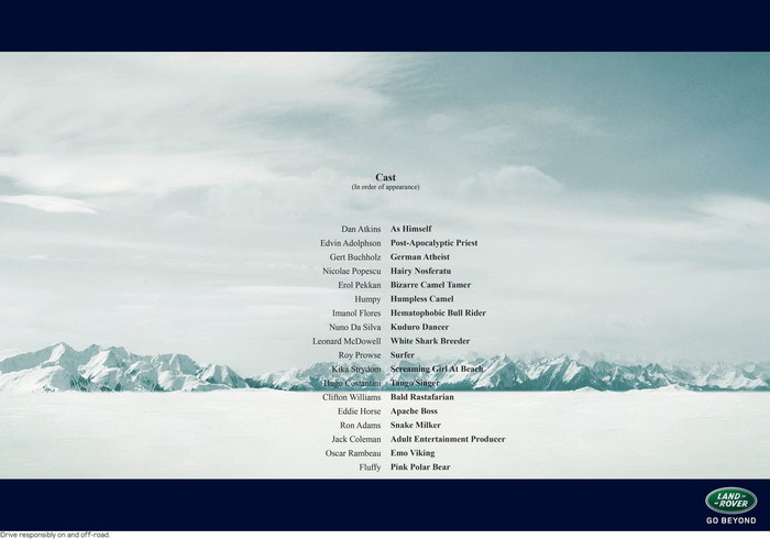 当前位置:中国广告人网站>创意策划>平面饕餮>详细内容 路虎汽车平面广告(1) 作者:佚名 时间:2012-6-29 字体:[大] [中] [小]