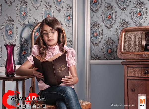 PS:没有虚伪做作大明星,没有虚假煽情的广告词,却以好的创意让大家了解了它记住了它。小男孩在读弗里德里希·威廉·尼采的现代哲学,小女孩在读西格蒙德·弗洛伊德的著作。人家这牛奶肯定不含三聚氰胺!!