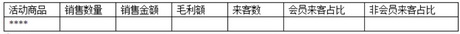 如果再结合表二,我们就可以从商品这条线上对整个活动效果进行一个全面的评估。由此,可以指导我们下次活动时该如何选择品种;该如何确定活动品种价格;选择的活动品种对本品类的吸客贡献率等等。