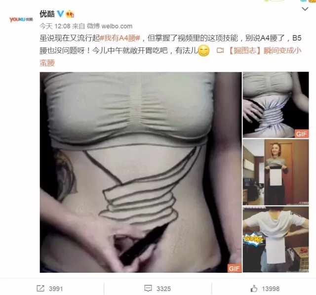 当前位置:中国广告人网站>创意策划>策划实战>详细内容 A4腰为什么一夜爆红? 作者:魏家东 时间:2016-3-18 字体:[大] [中] [小]