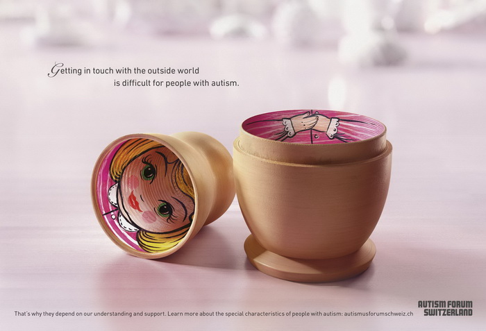 当前位置:广告人网站>创意策划>平面饕餮>详细内容 瑞士孤独症论坛平面广告(1) 作者:佚名 时间:2021-6-8