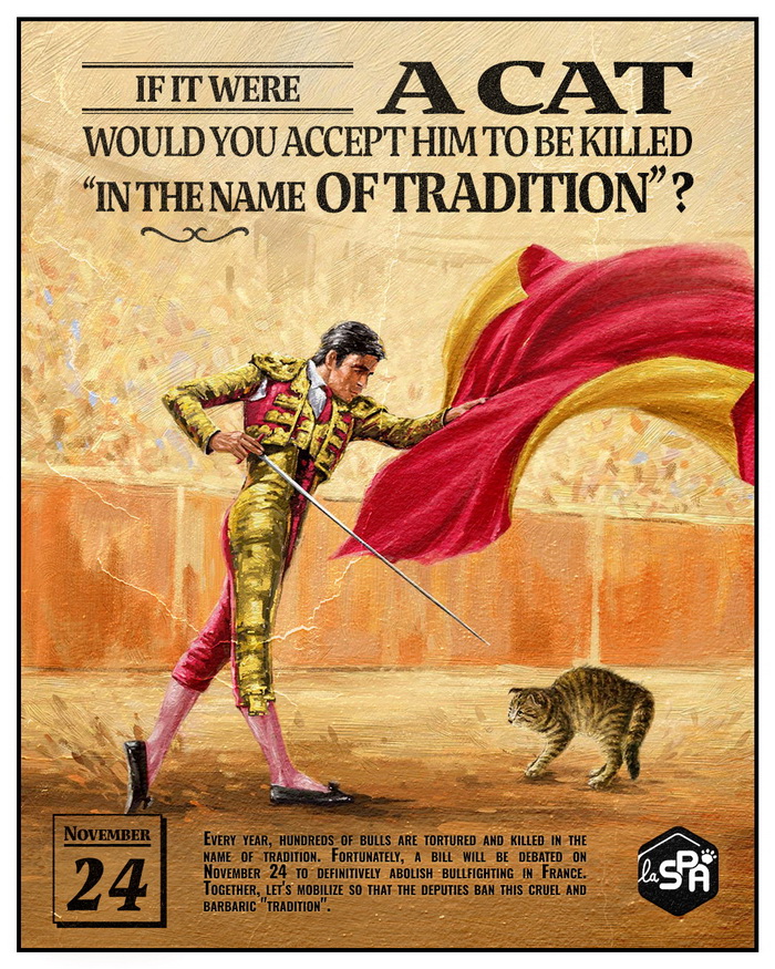 每年都有数百头公牛以传统的名义被折磨和杀害。幸运的是,一项法案将于 11 月 24 日进行辩论,以明确废除法国的斗牛活动。让我们一起动员起来,让代表取缔这种残忍野蛮的“传统”。