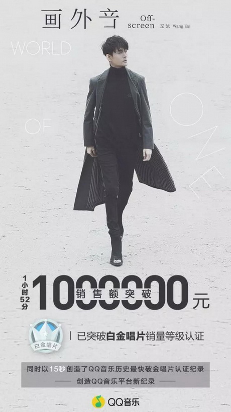 QQ音乐助力王凯数专15秒达成金唱片认证纪录