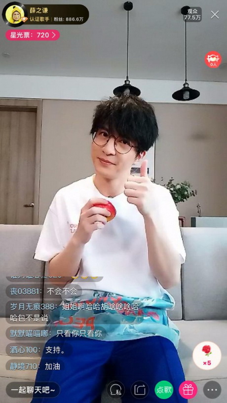 薛之谦酷狗直播与用户粉丝深度互动,观看峰值一度达到130W+