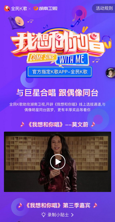 作为唯一官方报名通道,全民K歌为节目输送了5600余万合唱作品引发全民合唱