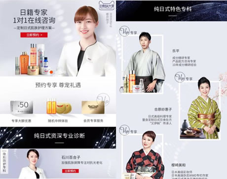 在天猫店内点击的专家咨询即可预约日籍专家进行视频咨询,让用户在线上购物的过程中,也能够享受到与线下同质的肌肤护理指导服务,体验零距离手法教学,和一对一的专属体验。