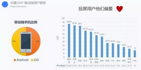 答案是肯定可以的,通过手机和电视的连接,在这一个独特的投屏场景下,乐播可获取到用户手机唯一标识(IMEI/IDFA)、 设备信息、地理位置、投屏时间段、全网视频内容信息、兴趣爱好等多维度数据。从而彻底解决智能大屏无法统计到个人的通病,电视机前坐了谁,这个人的性格和时下需求是什么,这个家庭的成员结构,家庭需求,通过投屏的OTT DMP平台都可以精准知道,简单的说就是电视知道被哪个手机连接过,手机告诉电视我是谁,我有什么需求。