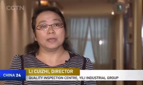 全国人大代表、内蒙古伊利实业集团股份有限公司质量检测控制中心主任李翠枝接受采访