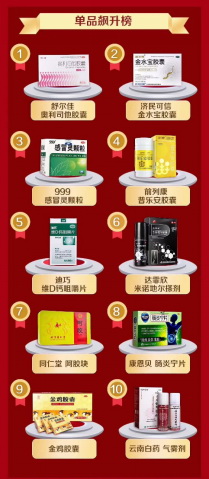 同时,以萃取云南文山鲜三七、人参、黄芪、葛根等纯植物精华补气血的明星单品云南白药气血康口服液,在此次“双11”期间,位居京东大药房【补气养血类】第5名!