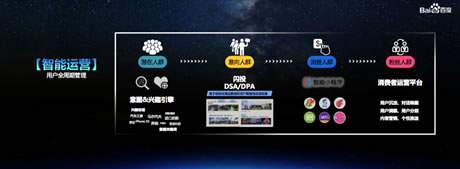 智能运营则为营销提供了新的平台。百度在今年9月开放智能小程序,仅仅两个多月过去,小程序的月活用户就已经过亿。“AI让开放生态的跨场景用户运营成为可能。”陈志峰介绍,百度开放智能小程序后,可以更精准地捕捉用户需求,尤其是长尾、低频的服务需求,百度的智能运营体系可以实现对用户的全周期管理,从意图、兴趣精准定向,到小程序提升转化,再到消费者运营平台对用户实现沉淀、唤醒,帮助广告主在数字营销3.0时代打造营销闭环。