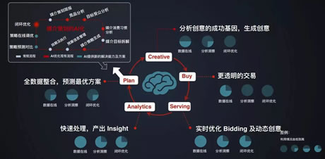 尽管目前,最适合AI大规模算法落地的无疑是广告投放和归因分析的部分,而创意与媒介策划正在成为下一步渗透的中心。媒介策划的AI化将会在现有常规流程的基础上优化诸如竞品分析,受众分析策略生成等部分,并引入AI所提供的新能力——策略在线调优,预测对比等等。