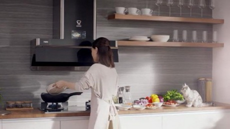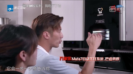 原本对主人厨艺十分不屑的“喵星人”,竟然被香气诱惑,惊奇地看着主人在MATE7自动烹饪系统帮助下,轻松快乐地烹饪美味。