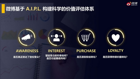 当媒体与营销格局都发生改变时,建立起更科学的行业标准和价值衡量体系尤为重要。微博基于A-I-P-L模型,从“是否真正达到目标受众”、“是否引起情感共鸣”、“是否激起粉丝转化”、“是否获得持续价值转化”四个核心问题出发,构建科学的价值评估体系。