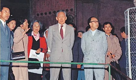 ▲1985年,新加坡国父李光耀参观曲阜,赞誉孔府家酒是“曲阜第四孔”。