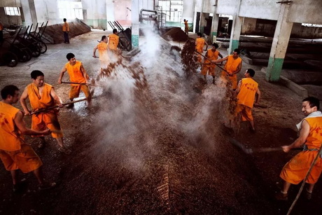 ▲孔府家成品化验室工作人员在严格检查鉴定出口产品质量。