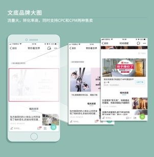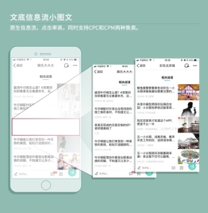 文底信息流小图文:原生信息流,点击率高,同时支持CPC和CPM两种售卖。