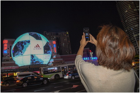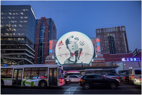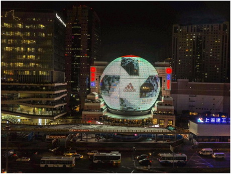 为了创造震撼的视觉效果,此次阿迪达斯将上海最具标志性的美罗城球形建筑打造成一颗超巨型世界杯官方比赛用球。巨大LED球型大屏循环播放23位创造者的人像,全天候向世界辐射创造能量,每一位路过的行人都感受到世界杯的激情和运动的纯粹。对于球迷来说,阿迪达斯的这场营销活动既创造了一个可以随时随地和球星互动的机会,还提供了身临其境、虚实相生的游戏体验。通过AR新科技,为忙碌的生活带来轻松的调剂,用最前沿、最富创造力的方式与世界杯一起狂欢。