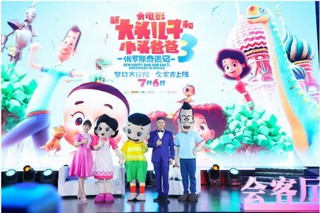 第一组嘉宾是央视动画的小鹿姐姐和《大头儿子小头爸爸3》剧组人偶。台上幽默的互动不是引发台下笑声,曾茂军与台上嘉宾联手将即将上映的这部动画大电影推向全场关注的高潮。